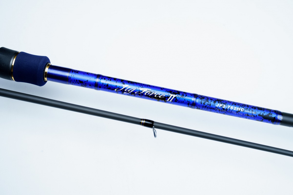 Серия Hearty Rise Jig Force II оснащена кольцами FaZLite от компании FUJI, на высоких нержавеющих рамах цвета матовый хром, фирменным катушкодержателем SeaGuide. Голубовато-синие вставки колец как нельзя лучше гармонируют с благородным синим цветов рукоятки из EVA и синим лаком бланка на комле, что в сочетании с золотистыми элементами отделки создаёт стильный «джинсовый» дизайн удилища. Чехол двухсекционный, синий со светло-серой отделкой.
